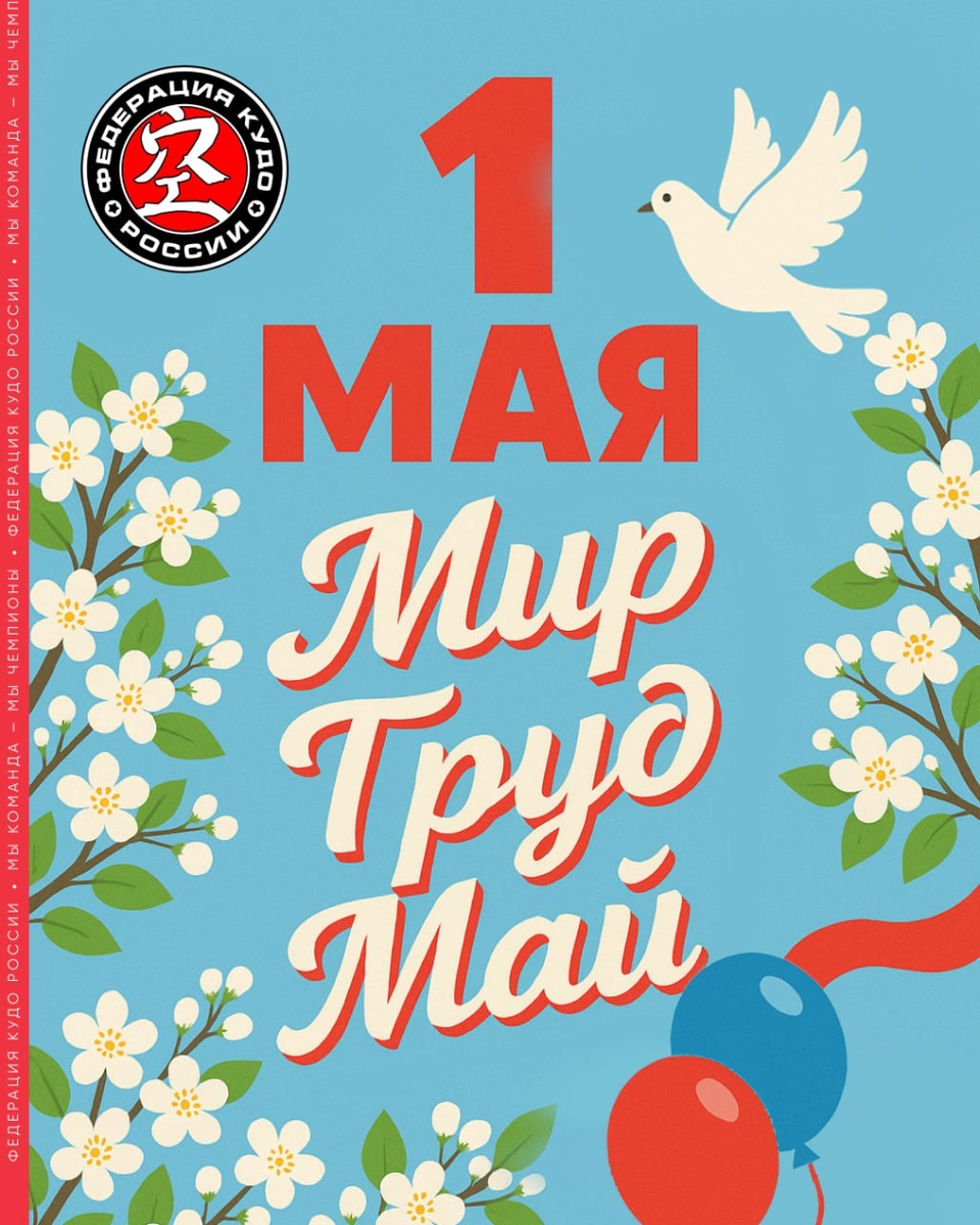 Дорогие спортсмены, тренеры и все, кто связан с миром кудо! 🥋 ⠀ Федерации кудо России сердечно поздравляет вас с Днём Весны и Труда! 🇷🇺 ⠀ Этот праздник символизирует не только обновление природы, но и силу человеческого духа, который через труд достигает высот. ⠀ Кудо — это искусство, где каждое движение оттачивается упорством, а победы рождаются в единстве тела, разума и воли. Ваш ежедневный труд в додзё, дисциплина и стремление к совершенству — вот залог успеха! ⠀ С праздником! Пусть ваш путь будет светлым, а каждое усилие — плодотворным! Ос!