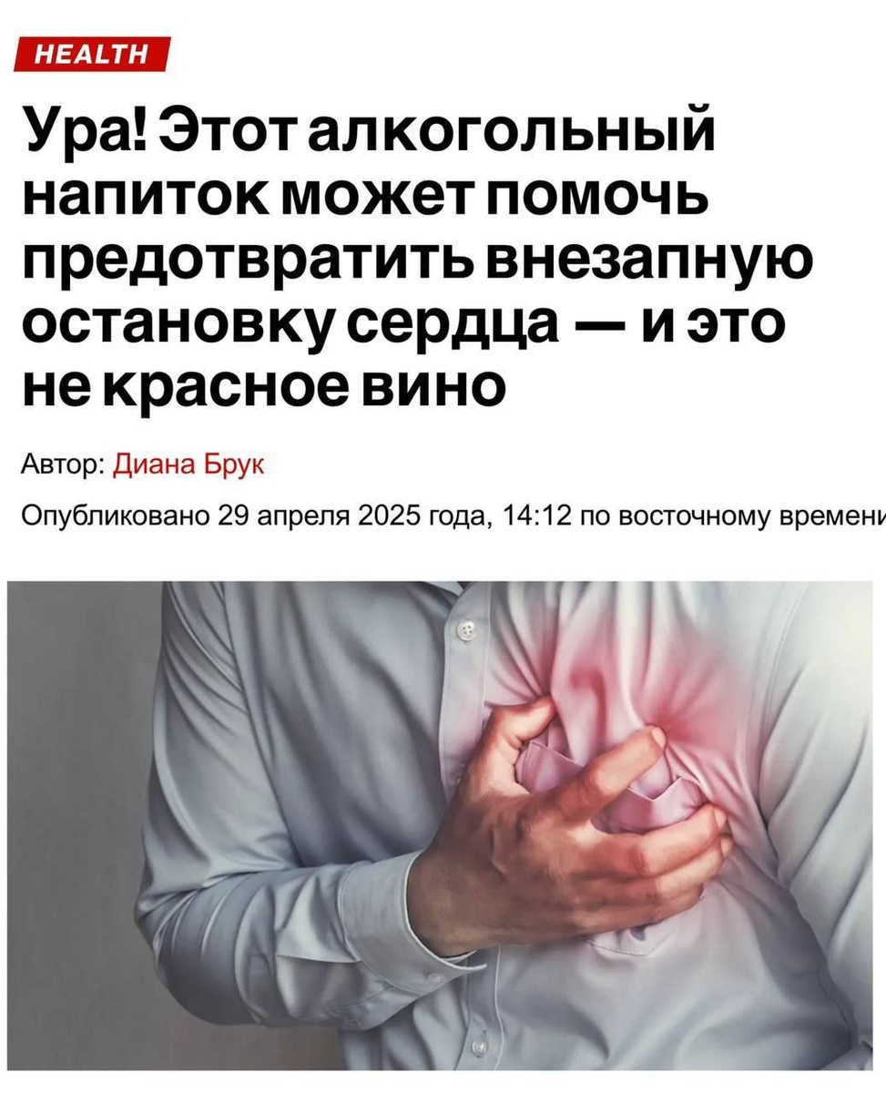 ⚡️Шампанское и белое вино полезны для сердца. Исследователи обнаружили, что их умеренное употребление снижает риск остановки сердца на 30%. Это связано с ресвератролом, антиоксидантом, содержащимся в винограде. Не пьëм, а лечимся. HTN