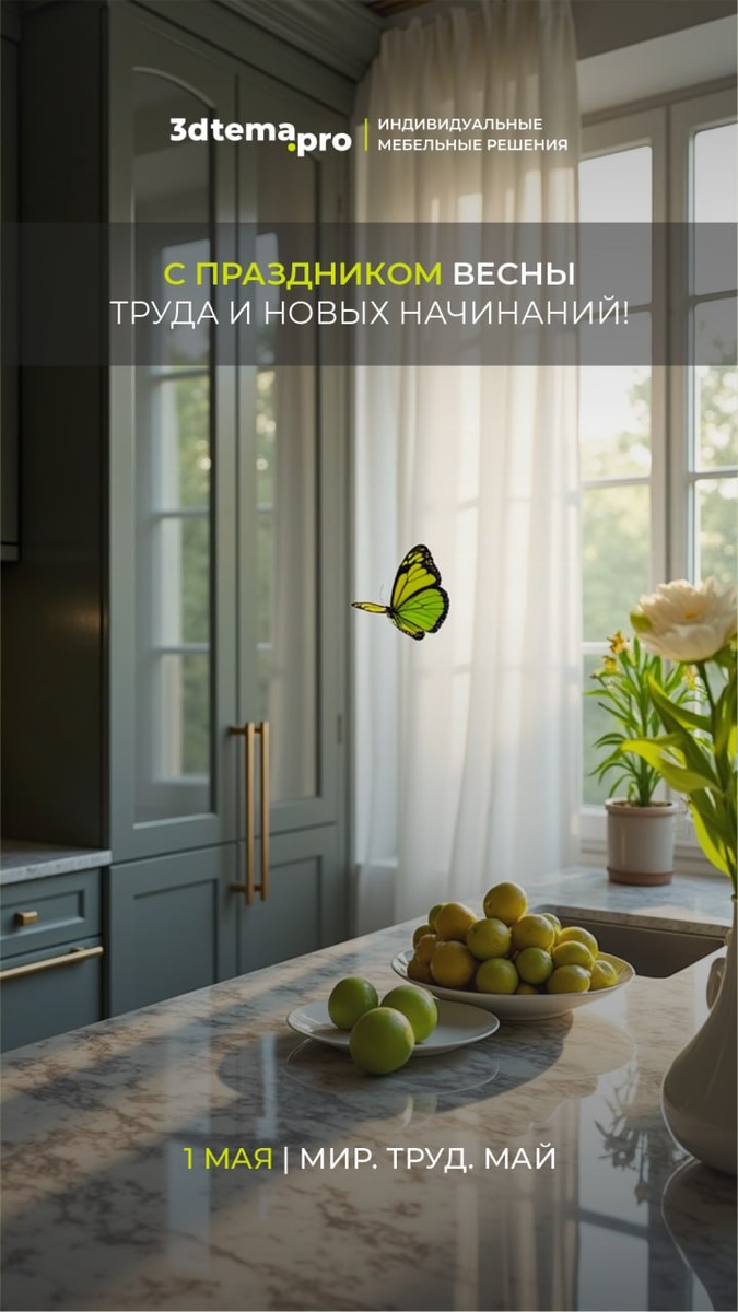 Друзья, поздравляем вас с 1 Мая! 🌸 Пусть этот весенний праздник принесёт вам вдохновение, радость созидания и уют в каждый дом! 🏠 Мы рады быть частью ваших интерьерных историй и в честь праздника приготовили особенный подарок: 🔥 Скидку на популярную модель фасада с двойным штапиком "Франсе W" – элегантное решение для стильных интерьеров и новинку в нашем модельном ряде! Подробнее тут Желаем вам солнечного настроения, плодотворной работы и уюта в каждом доме! ☀️ Всегда на связи для ваших проектов! Ответим на вопросы и поможем с выбором! 📱 Telegram 📱 WhatsApp 📱 Сайт: 3dtema.pro 📲 +7 495 278 08 44 ✉️ info@3dtema.ru