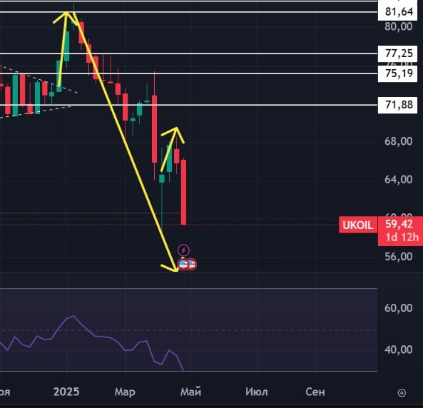 🛢 #Нефть #Brent #BR #bogdanoffinvest 🟢 Сегодня нефть марки Brent упала ниже 60$ за баррель. Это уровни 2021 года, когда нефть сильно упала в ковидное время и длительное время потом восстанавливалась в цене. В 2021 году не было СВО, не было такой высокой инфляции. Это было кризисным временем из которого экономики всего мира старались выбраться, а сейчас мы погружаемся в этот период. Так к тем, кто ждет 6000 по индексу прямо отсюда, возникают вопросики. 🟢Еще вчера Минфин снизил прогноз по нефтегазовым доходам бюджета на -2,6 трлн и пересмотрел втрое дефицит. Ранее Мишустин дал понять, что нам при низкой цене на нефть светят новые налоги, об этом писал вот тут. Но самым простым способом снизить дефицит бюджета всегда было ослабление рубля. 🟢 Еще вчера Песков сообщил, что указ об обязательной продаже валютной выручки для экспортеров будет продлен. Такое решение не способствует уменьшению дыры в бюджете. Экспортерам приходится продавать валюту по текущему курсу при текущей цене на н