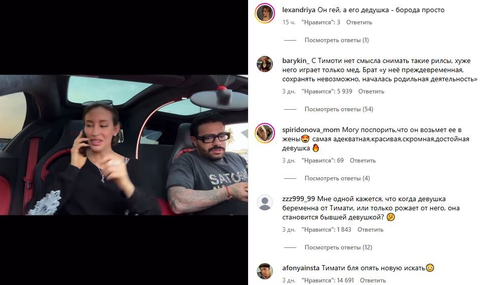 Началось все с видео, которое выложила нынешняя возлюбленная Тимати, Валентина Иванова. Видео было снято в Дубае, в отпуске, и Валентина там... ну, как бы между делом, буднично так бросила в телефон: "Да, забыла сказать, я как раз вчера купила тест. Оказалось, что я беременна!". Без особых эмоций, почти равнодушно. Такой тон, что многие сначала не поверили – розыгрыш, наверное? Сам Тимати в кадре выглядел, кажется, немного растерянным.
