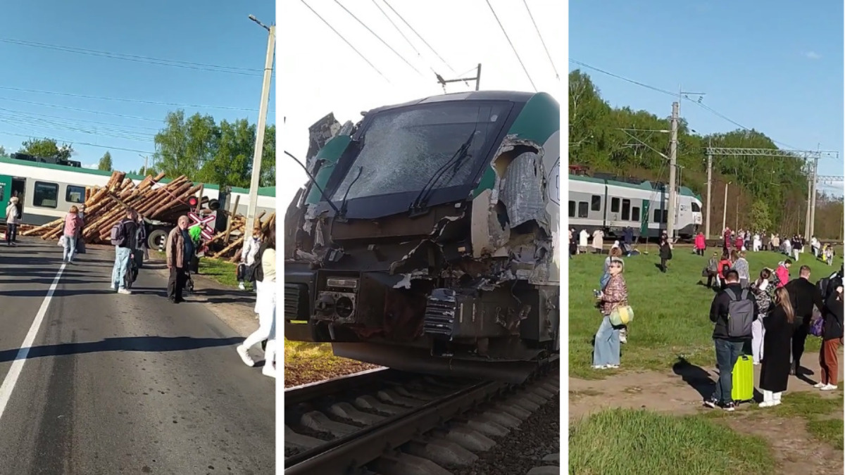 В TikTok появились видео, снятые в первые минуты после столкновения поезда бизнес-класса №752 Минск-Гомель и лесовоза в Жлобинском районе Гомельской области. В результате ДТП никто из пассажиров, согласно официальным заявлениям милиции и оператора железной дороги, не пострадал. На кадрах видео, выложенных очевидцами аварии, хорошо видны повреждения, которые получила кабина «Штаддера», протаранившая лесовоз, а также сам пострадавший грузовик и пассажиры, уже покинувшие поезд. По словам автора одного из видео, с места аварии «скорая» увезли как минимум одного человека, однако в официальных ведомствах о пострадавших не сообщалось. ... Продолжение читайте тут. (Или тут.)