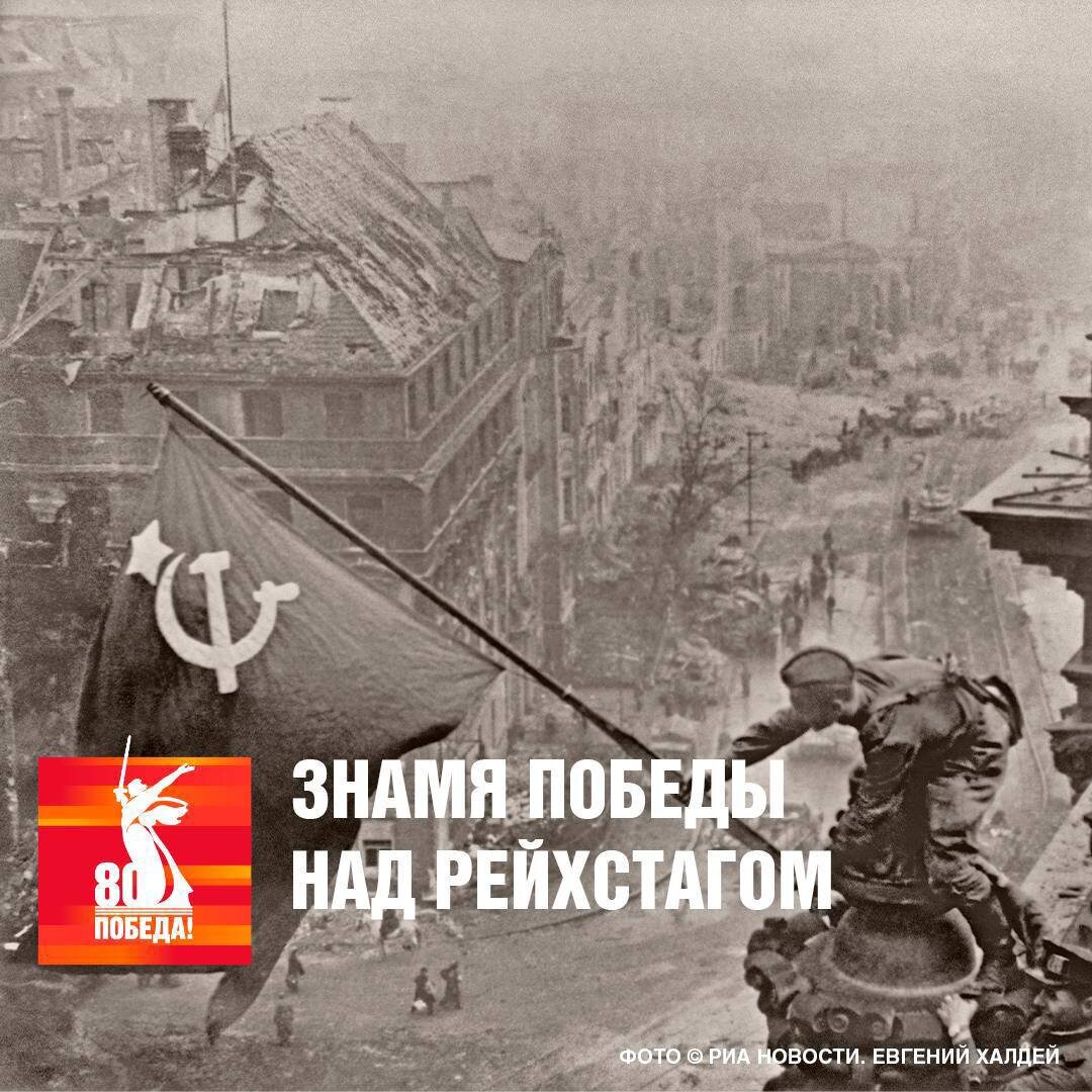 ⭐️ 1 мая 1945 года на куполе поверженного Рейхстага в Берлине взвилось красное Знамя Победы. Его водрузили разведчики 756-го стрелкового полка сержант Михаил Егоров и младший сержант Мелитон Кантария В ходе Берлинской операции ожесточённые бои за овладение Рейхстагом велись с 29 апреля по 2 мая. Здание являлось важным объектом в системе обороны Берлина. Рейхстаг был превращён немцами в мощный узел сопротивления, который обороняли свыше тысячи человек с артиллерией и танками. Первый штурм был начат 29 апреля, однако закончился неудачей. Но уже на следующий день советские солдаты ворвались в Рейхстаг. Бои шли за каждый этаж, солдаты метр за метром очищали здание от фашистов до утра 1 мая. Фотографии горящего Рейхстага с реющим над его куполом советским флагом были опубликованы в газете «Правда» 3 мая 1945 года. #Победа80