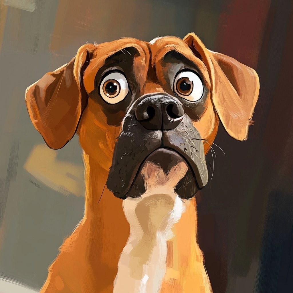 Создано на основе запроса: boxer dog with a worried look on his face, pixar style