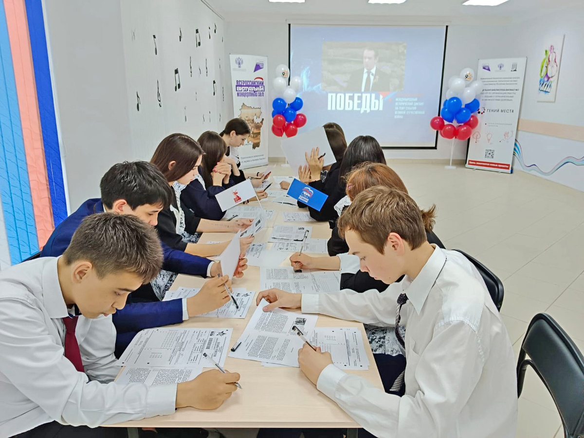 25 апреля на тысячах площадках по всей стране и за рубежом прошла седьмая по счёту акция «Диктант Победы». «Диктант Победы» – это масштабная просветительская акция, приуроченная к празднованию Дня Победы. В её рамках любой желающий может проверить свои знания о событиях Великой Отечественной войны. В этом году атмосфера вокруг мероприятия была особая, ведь 9 мая весь мир отметит 80-летний юбилей победы над фашизмом. Инициаторы проведения «Диктанта» – партия «Единая Россия», Российское военно-историческое общество, Российское историческое общество и Всероссийское общественное движение «Волонтёры Победы». Главная цель акции – сохранить память о самой кровопролитной войне в истории человечества, максимально широко распространить информацию о её событиях и подвигах, поддержать интерес, особенно среди молодёжи, к изучению истории военных лет. Первый раз «Диктант Победы» прошёл 7 мая 2019 года. Тогда в нём приняли участие более 150 тысяч человек из 24 стран. В прошлом году аудитория акции со