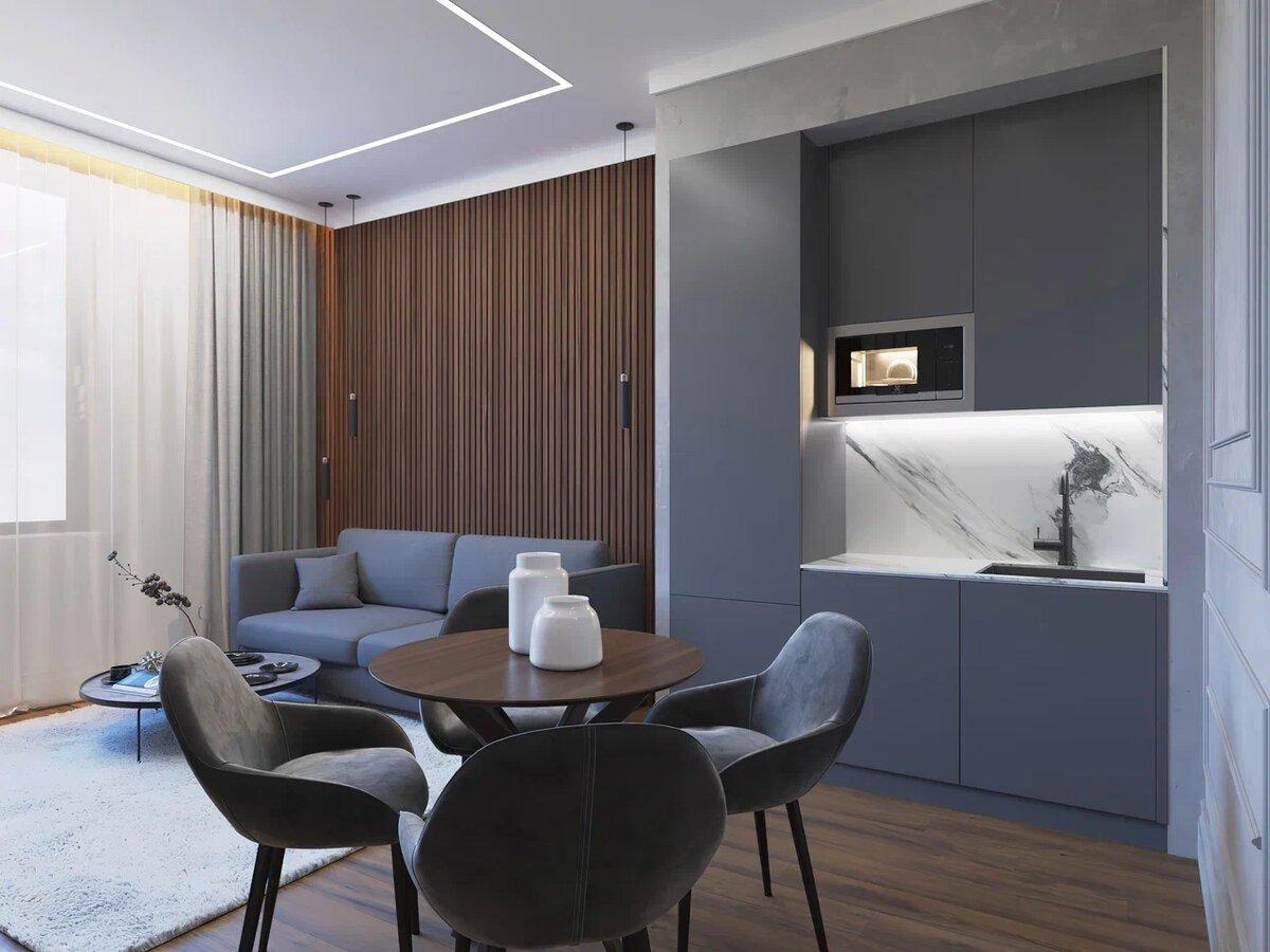 На этом этапе создаются 3D-визуализации. Это реалистичные изображения будущего интерьера, которые позволяют представить, как всё будет выглядеть «вживую». Визуализация помогает избежать ошибок и сразу корректировать детали.