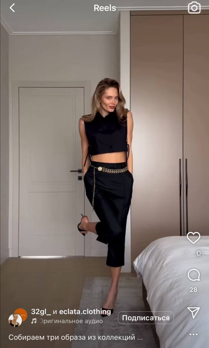 Кажется, увидела идеальные капри на Виктории Егоровой. Хочется именно таких, без прилегания по икрам👌добавляю их сюда