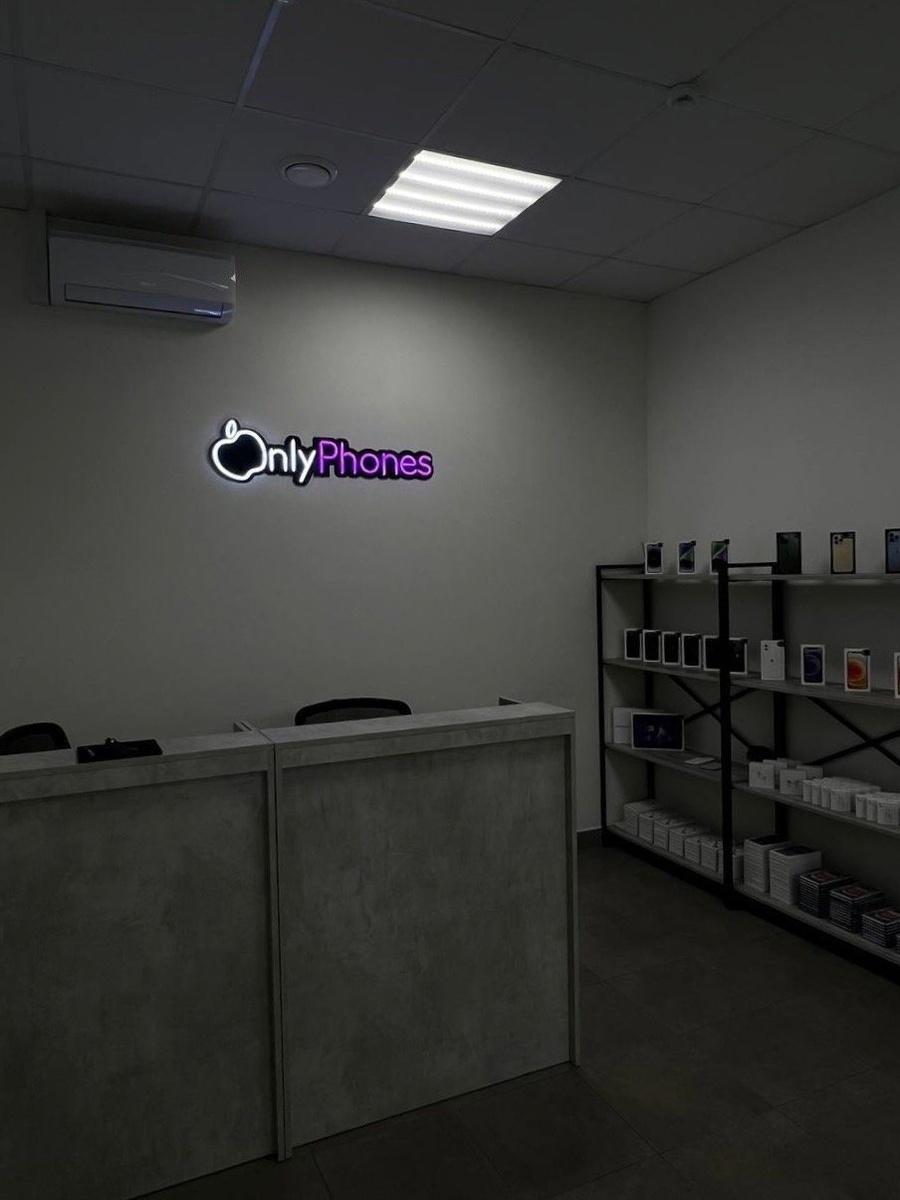 Стильный неоновый логотип на черной контрастной подложке для магазина техники в нашем исполнении 🤩