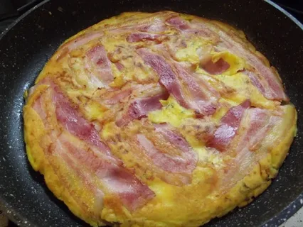 Слоёный омлет с грудинкой блюдо, вдохновлённое европейской кухней, особенно французскими и русскими традициями. Например, лотарингский омлет (из региона Лотарингия во Франции) включает копчёную грудинку и сыр, что напоминает современные вариации этого блюда . В России подобные рецепты стали популярны благодаря сочетанию доступных ингредиентов: яиц, копчёного мяса и овощей. Слоёная структура, вероятно, возникла как способ равномерно распределить начинку и придать омлету объём . Классический рецепт слоёного омлета с грудинкой Ингредиенты (на 2 порции): - Яйца — 4 шт. - Копчёная свиная грудинка — 60–100 г (ломтиками) - Твёрдый сыр (швейцарский, гауда) — 50–80 г (тёртый) - Сливки или молоко — 50 мл - Помидор — 1 шт. (по желанию) - Растительное масло — 1 ст. л. - Соль, перец — по вкусу. - Зелень (петрушка, укроп) — для подачи. Пошаговое приготовление: Подготовка ингредиентов: - Нарежьте грудинку тонкими ломтиками, помидор — кружочками, сыр натрите. - Взбейте яйца со сливками, солью и пе