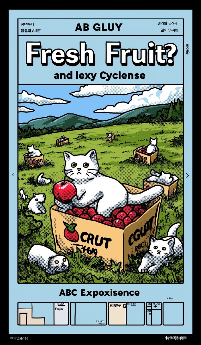 Создано на основе запроса: A Korean-style cartoon depicts a white cat riding on a strawberry juice carton, holding an apple, and walking down a hill towards the viewer. The text above reads "Fresh Fruit?" and the text below says "ABC GUI Layout Exercise". The background features green grassy hills and a blue sky with clouds, creating an aesthetically pleasing scene. The cats are drawn with simple line art, lacking intricate details. the art is cute style cartoon. the cat is adorable. --- Автоперевод: Мультфильм в корейском стиле изображает белую кошку, катаясь на картонной картоне клубничного сока, держащей яблоко и идущая вниз по холму к зрителю. Классно выглядит? 🤔 https://dzen.ru/id/65c0c65c86e4f837c27b24d7 #ИИ #AI #нейросеть #midjourney #art