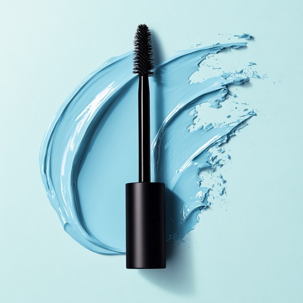 Создано на основе запроса: an image to promote a mascara with light blue theme
