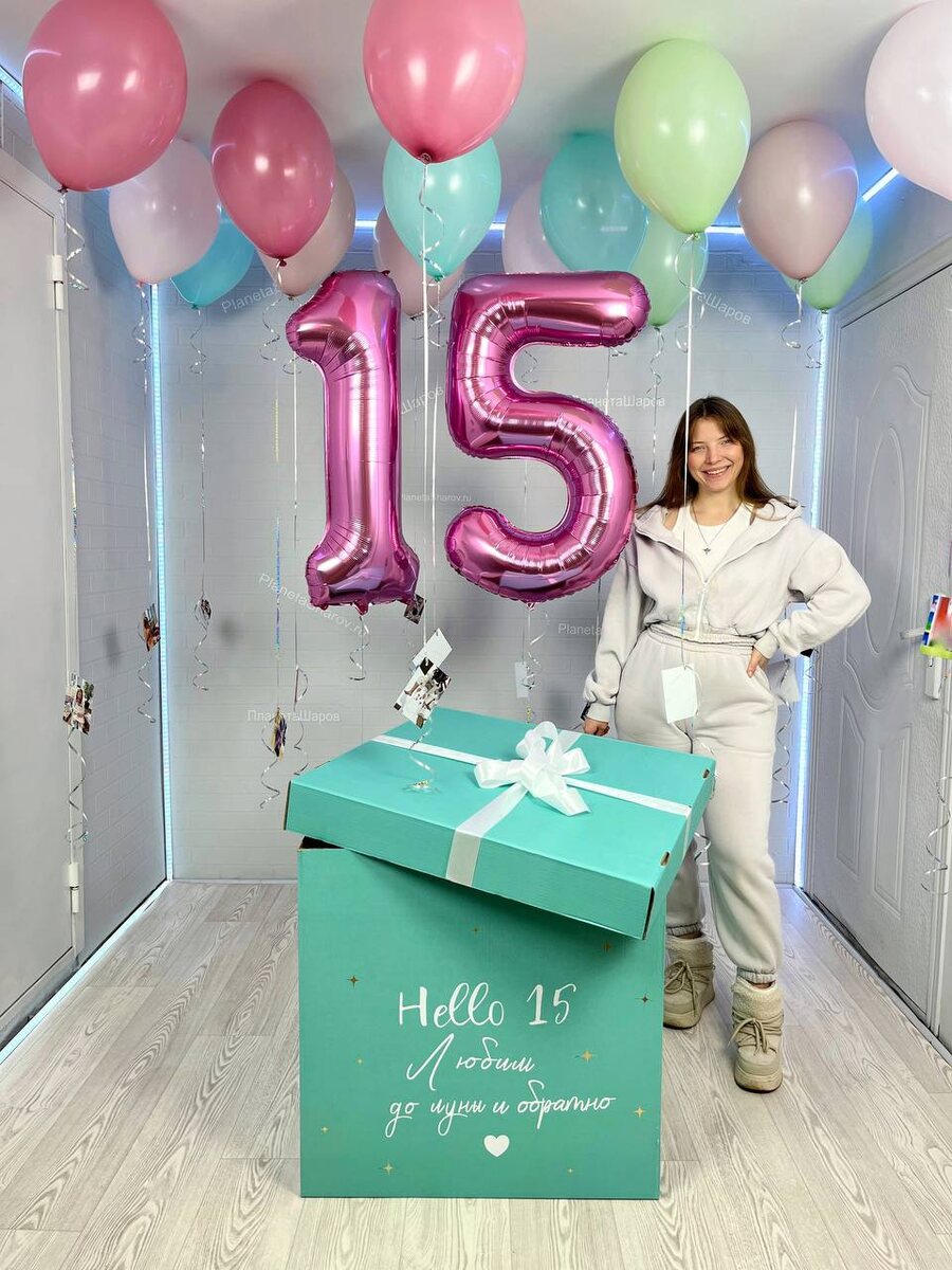 Заказать: https://planetasharov.ru/shop/korobka-s-sharami/vozdushnye-shary-na-15-let-dlya-devochki/