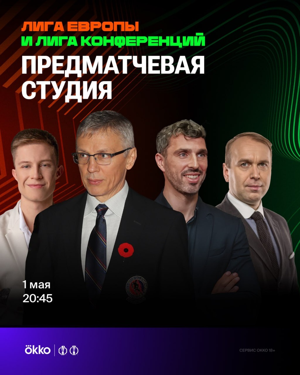🤟🏻 Наша великолепная пятерка — Ларионов, Прусов, Баженов, Казанский и ты. Обсудим сегодняшние полуфиналы ЛЕ и ЛК. Включай в 20:45 в сервисе Okko, на YouTube или в VK Видео.