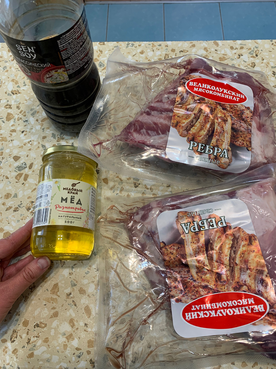 Приветствую вас на моем канале. Меня зовут Юля. Мне 34 года. Я худею с 97 килограмм. Моя цель 65 килограмм. Я худею на подсчете калорий. На данный момент я сбросила уже больше 20 килограмм. Я не беру свой метод похудения за рекомендацию для всех. У каждого своя физическая активность и норма калорий, аллергии и пищевые непереводимости. Фото тарелок это то, чем я действительно питаюсь: как пример, что можно худеть и на обычной еде, которую вы готовите для всей семьи. Сегодня мы приготовим свиные ребра. Мы потому что готовит муж, а я так немного помогла и записала для вас рецепт. Нам понадобиться свиные ребра ~ 1,5 килограмма мед - 4 столовых ложек соевый соус - 6 столовых ложек соль/ перец по вкусу. Для начала свиные ребра надо зачистить от пленок. Для этого аккуратно поддеваем ножом и приподнимаем. Дальше берём за угол бумажным полотенцем и снимаем. После снятия ребрышки нужно порезать . Чтобы ребра не получились сухими их нужно резать по 2. Замешиваем мед и соевый соус. Туда сразу