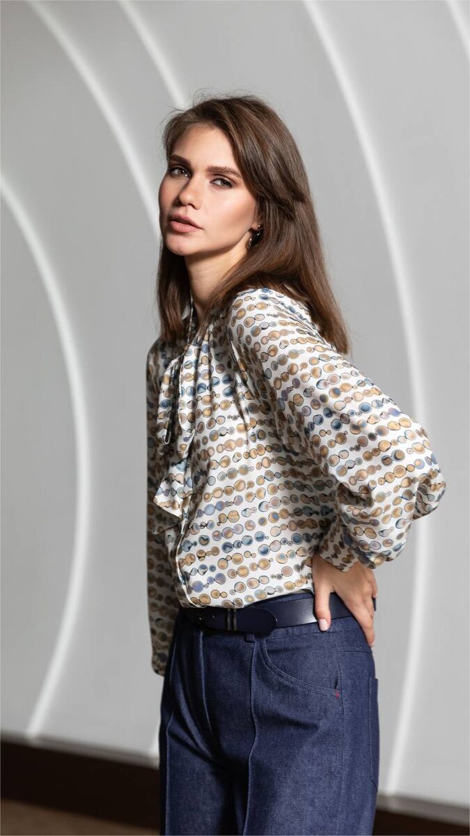 День. Город. И Вы — в центре объектива Ведь Вы надели его - образ, который выделяется в динамике большого города. Шелковистая ткань блузы нежно скользит по коже. Принт завораживает своей глубиной и напоминает морскую гальку, отшлифованную волнами. Вами так и хочется любоваться! В сочетании с джинсовыми брюками со стрелками получился гармоничный баланс между расслабленностью и деловым стилем. Этот дуэт – воплощение элегантной небрежности, позволяющей Вам выглядеть безупречно в любой обстановке: на деловой встрече, в офисе или на прогулке по городу. Для заказа образа пишите на наш WhatsApp: https://wa.me/message/GESSL37P7LULC1