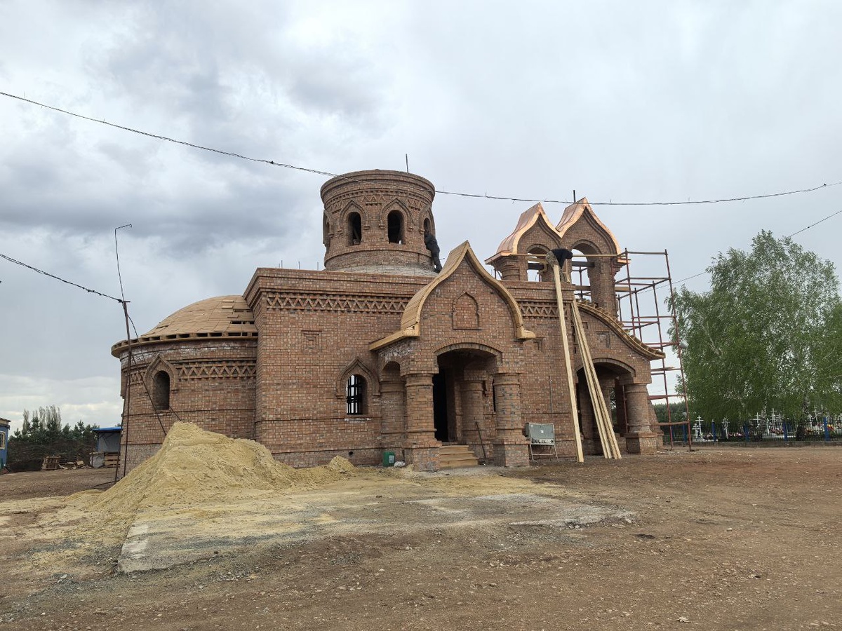 Сегодня храм выстроен, подготовлены купола, монтируется свод крыши.