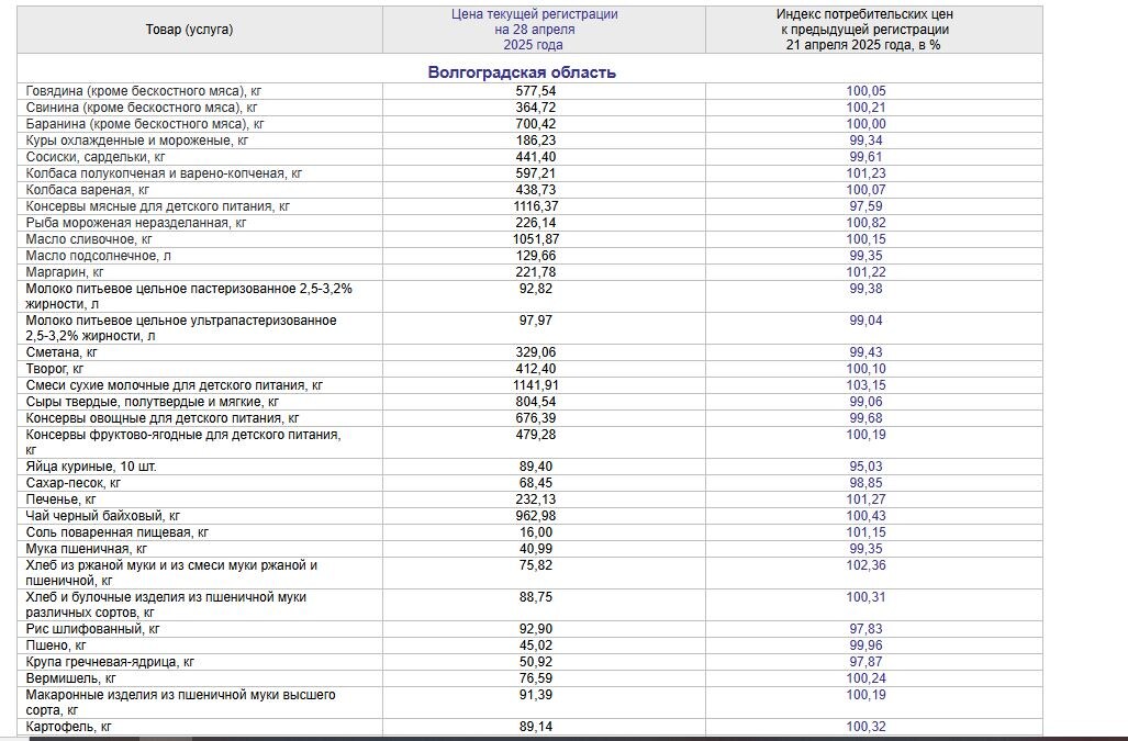 Волгоградстат отчитался о ценах на продукты в конце апреля. По данным статистиков, на минувшей неделе на 5% подешевели куриные яйца, которые продаются по 89,40 рублей за десяток. Неожиданно аж на 24,3% подешевели огурцы. Их можно приобрести по 143,98 рубля за килограмм. Также на 3,9% снизились в цене помидоры, которые в среднем продают по 226,81 рублей за кг. При этом за неделю стремительно (+14,2%) подорожал репчатый лук, средняя стоимость которого составляет 67,31 рублей. На 9,2% взлетели цены на капусту белокочанную, ее продают по 65,39 рублей за килограмм. Также за неделю подросли цены на свеклу (+6,3%), яблоки (+4,4%), морковь (+3,8%). Кроме того, за неделю подросла стоимость проживания в 3-звездочных гостиницах (+3,8%), плата за жилье в домах государственного и муниципального жилищных фондов (+1,1%), а также автомойка (+1,9%). Ранее эксперты рассчитали для волгоградцев стоимость 9 видов шашлыка и отдельно корзину для пикника из расчета на компанию из 8 человек — нескольких семе