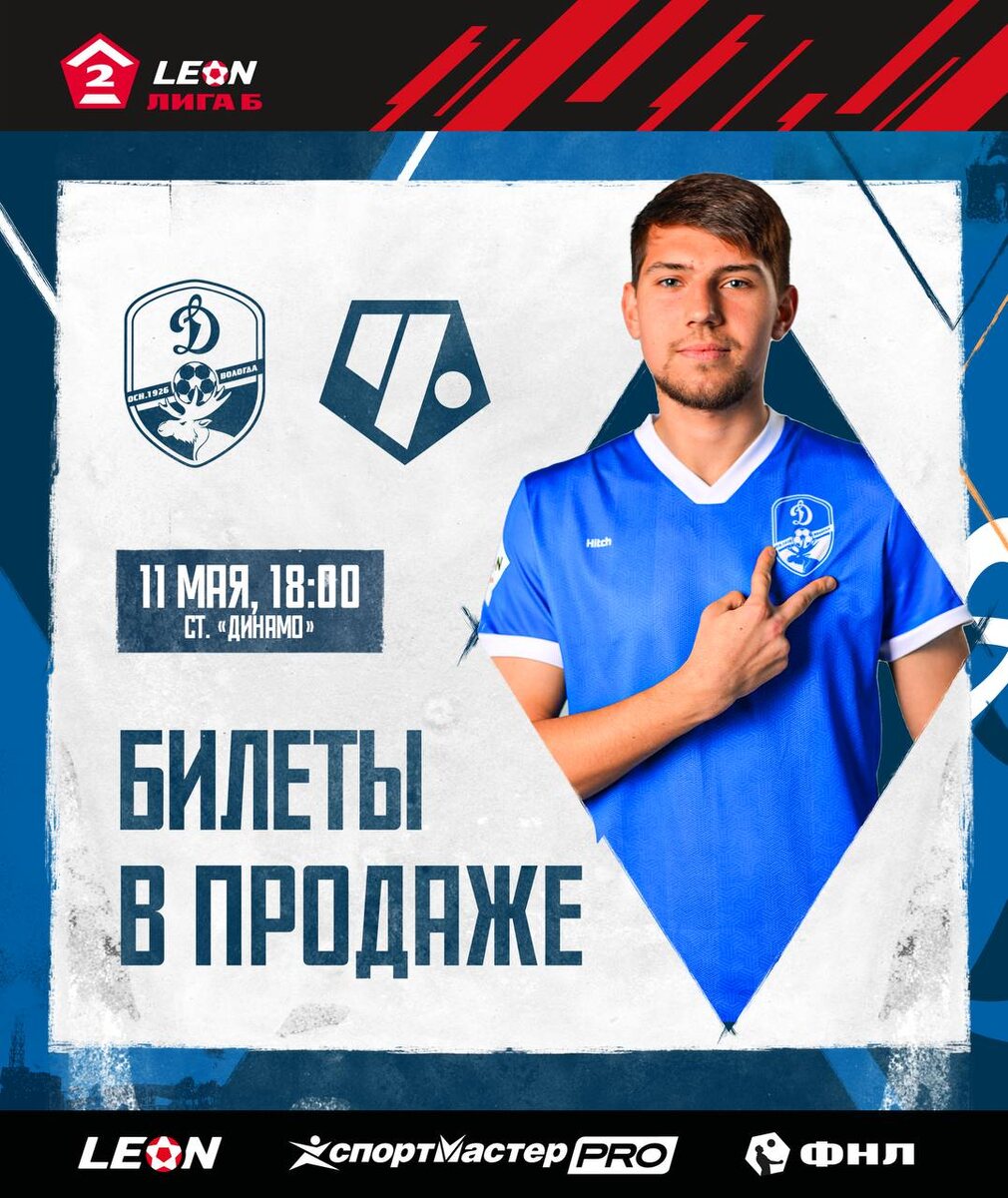 Открыта продажа билетов на домашнюю игру с «Чертаново» 🔥 11 мая в 18:00 встретимся с московской командой на стадионе «Динамо». Покупай билеты и приходи на арену поддержать бело-голубых: clck.ru/3JT6dr 🎟 @dynamovologda
