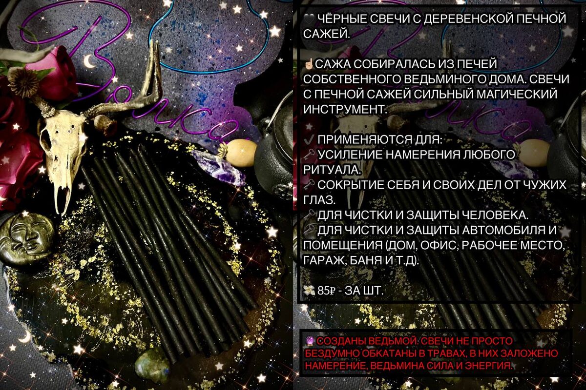🌿 Тонкие черные свечи с травами. 💫 Наши свечи это проводники, связующее звено между миром материальным и миром духовным, между желанием и его реализацией. 🔮 Созданы Ведьмой. Свечи не просто бездумно обкатаны в травах, в них заложено намерение, Ведьмина Сила и энергия. ✨ Применяются в любых ритуалах, как дополнительно так и самостоятельно. ❕Это не арома свечи, в них нет отдушек! ❕В процессе прожига они пахнут воском и тлеющими травами, могут плеватьсятся и трещать - это нормально. 💥 За счет трав, свеча может прогорать быстрее, примерно от 20 до 40 мин. 🌿 Используются только натуральные ингредиенты. 💸 Цены варьируются от формы и длинны свечей, от состава ингредиентов.