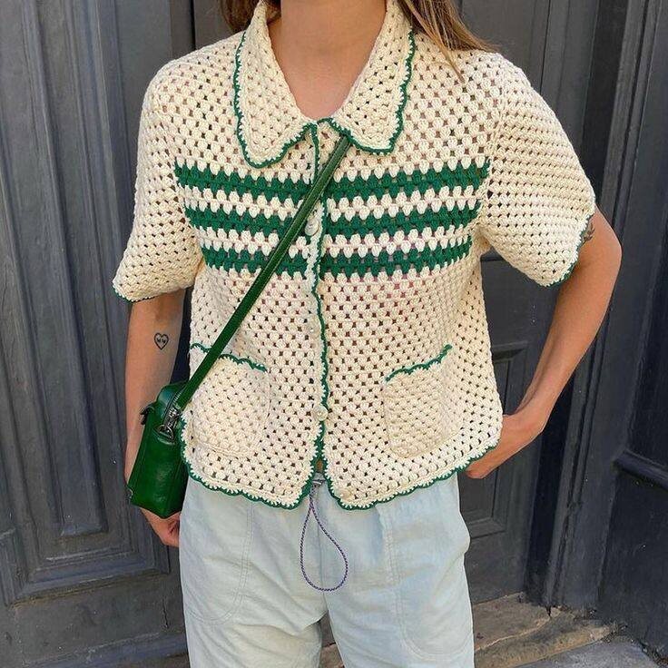🔻САМАЯ МОДНАЯ ФУТБОЛКА НА ЛЕТО | ТЕХНИКА КРОШЕ В этом сезоне футболка-поло станет незаменимым элементом гардероба. Она может быть как немного удлиненной, так и укороченной, с мягким воротником-стойкой, на пуговицах или без них. В общем, это классическое поло. Главный секрет заключается в материале. ▪️Как носить поло-кроше, если оно прозрачное? Просто наденьте его поверх боди или топа-бра. ▪️Цветовая палитра может бать любой, но присмотритесь к трендовым оттенкам: небесно-голубому, нежно-розовому или оттенку сливочного масла.