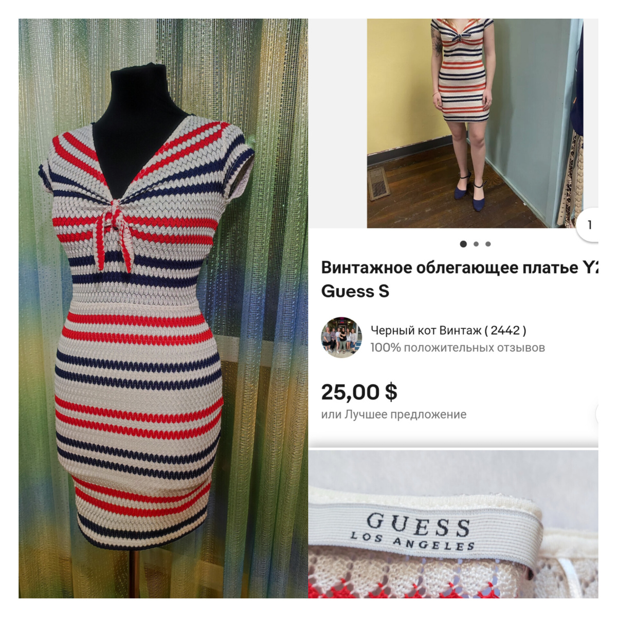 Всем привет! Сегодня я решила попробовать новый формат своих статей о находках в Секонд Хенде. Обычно я рассказываю о вещах, которые нашла в магазине, почему и по какой цене купила. Также добавляю историю бренда и на этом заканчиваю свой обзор. Сегодня хочу добавить информацию о цене, за которую я продаю на Авито и пригласить Вас к себе в группу в ТГ, где вы можете приобрести эти вещи и многие другие у меня в профиле. 1. Платье Guess. Размер S. На моем манекене размером М смотрится очень тесновато. А платье очень интересное, выполнено вязкой, и хоть нить из полиэстера, думаю, в нем будет комфортно. Платье подойдёт девушке с выраженной линией талии, иначе полосы на принте создадут эффект гусеницы. Я долго сомневалась забирать это платье из магазина или оставить. Первое решение перевесило второе, в итоге это миниатюрное "винтажное" платье ждёт свою хозяйку у меня в ТГ. Цена 1100 рублей. 2. Платок советский. Олимпиада 80. Платок шелковый, возможно крепдешин. Но бирки с составом нет. Зат
