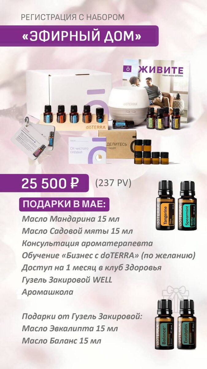 Наборы, которые можно купить при регистрации в мае КУПИТЬ ИХ МОЖНО В ЛЮБОЕ ВРЕМЯ ДНЯ И НОЧИ❕ На регистрационные наборы цены сохранили до июня. И смотрите, какие щедрые подарки мы вам дарим к этим наборам! Пишите, кто хочет зарегистрироваться. Скидка на продукцию дотерра 25% пожизненно закрепляется за вами сразу после регистрации. P.S. Распаковку регистрационного набора «Эфирный дом» смотрите здесь . И там же рассказала и показала его отличие от «Семейной аптечки»🔥