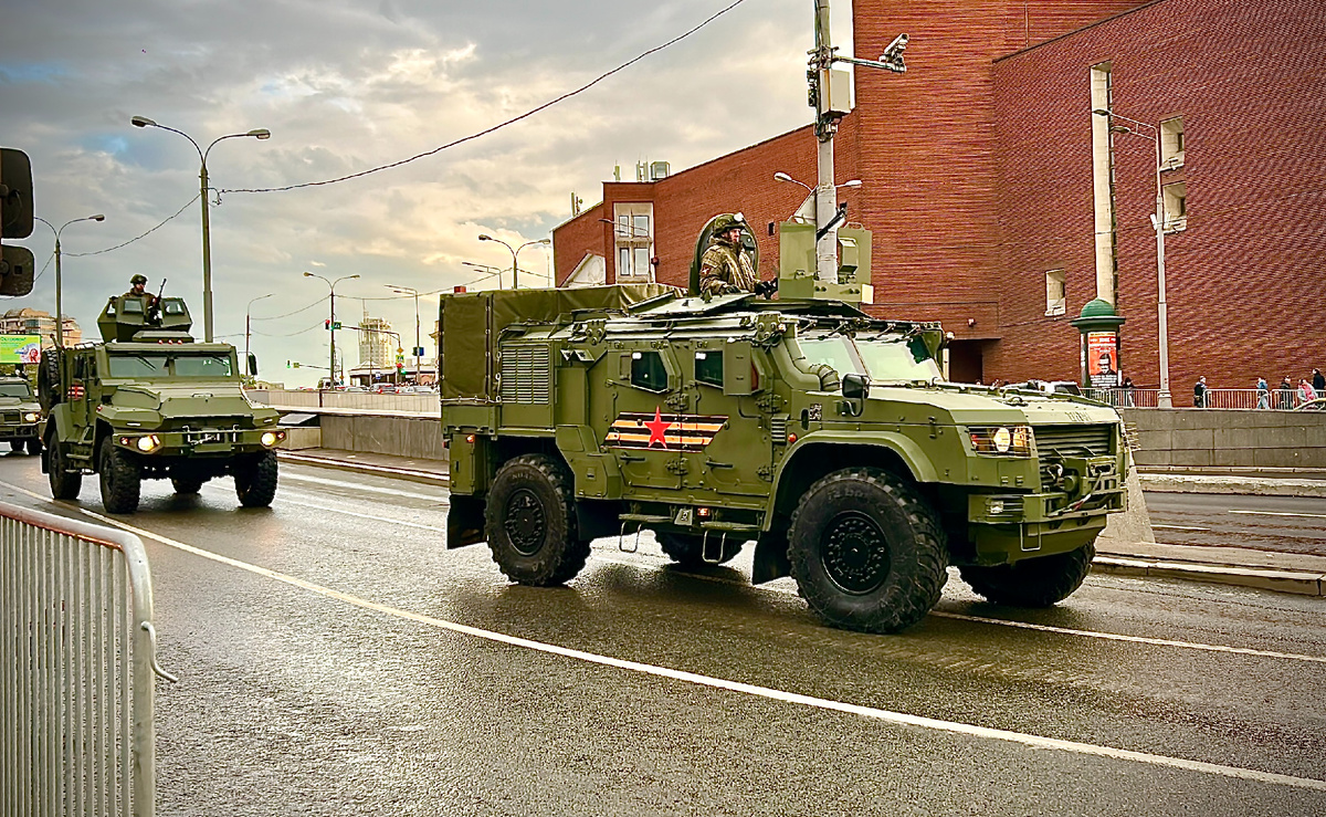 И уже традиционно в механизированной колонне мелькают компактные (на фоне других машин) бронеавтомобили «Тигр-М».
