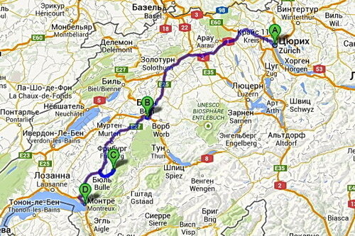 Маршрут такой: Цюрих – Берн – Грюйер – Монтрё