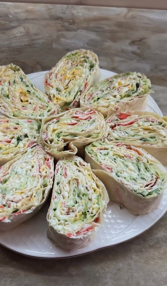 Каждый слой смазываете майонезом и выкладываете начинку и готово.
