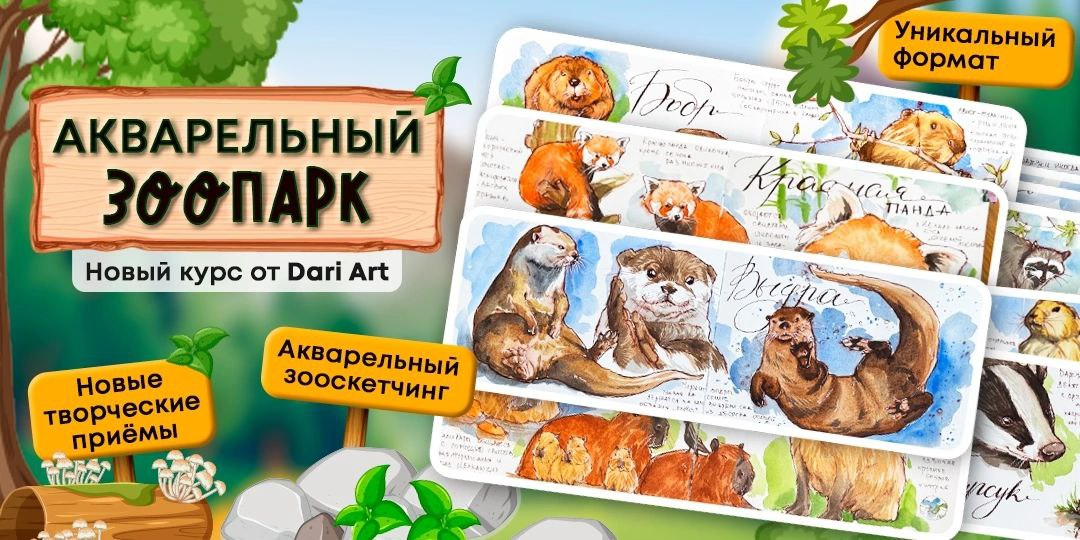 🦡 Приглашаем вас в новое творческое путешествие с Dari Art! И на это раз нас ждет ... "Акварельный зоопарк" ⭐️ 📌 Открываем набор на новую авторскую программу по акварельному зоо-скетчингу! ✓ Необычные формат скетчей ✓ Новые творческие приемы ✓ Подробные уроки в высоком качестве В курсе "Акварельный зоопарк" нарисуем 10 видов животных: барсук, енот, красная панда, суслик, бобр, выдра и другие 🦦 🎨 Не копируем референсы, а учимся ловить и передавать характер на бумаге! 📎 Учимся упрощать форму! Наша задача - рисовать с удовольствием, не уходя в детали, сохраняя динамичность и живость рисунка 👀 Работа с текстурой шерсти в различных вариантах, добавление эмоций - ведь мордочки животных бывают такими выразительными! А чтобы рисунки получились особенно эффектными, добавляем нестандартные детали: леттеринг и заметки про животных! 🚀 Старт курса уже сегодня! После оплаты вы получите: - подробный список материалов - вводный урок, в котором очень много ценной информации - схемы и прописи для