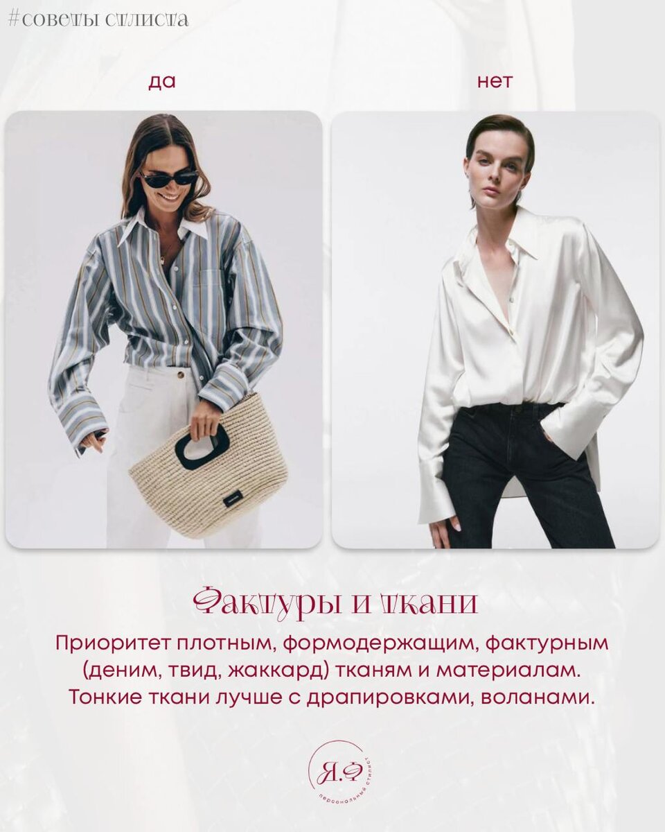 Как подбирать одежду, если фигура — стройная, с небольшим объёмом груди. Особенно — если при этом высокий рост. Делюсь универсальными принципами, которые подойдут и при другом типе телосложения, и при среднем росте. Добавляем объёма и выразительности за счёт материала: — Твид, вельвет, жаккард, плотный хлопок и деним — друзья вашей фигуры. — Лёгкие ткани тоже подойдут, если в них есть драпировки, воланы, вышивка. — Отдавайте предпочтение матовым поверхностям. — Все элементы, которые добавляют объём — работают на вас: рюши, драпировки, баски, крупные карманы, декоративные швы. — Выбирайте топы с интересной архитектурой — защипы, сборки, нестандартные крои. — Лодочка, квадратный вырез, асимметрия и американская пройма красиво оформляют плечи. — Глубокий V-вырез — подчёркивает хрупкость, но может сделать грудь ещё менее заметной. Используйте аккуратно. — Светлые оттенки, горизонтали, крупные принты (цветы, абстракция, клетка) — визуально усиливают верх. — Избегайте слишком мелких узоров