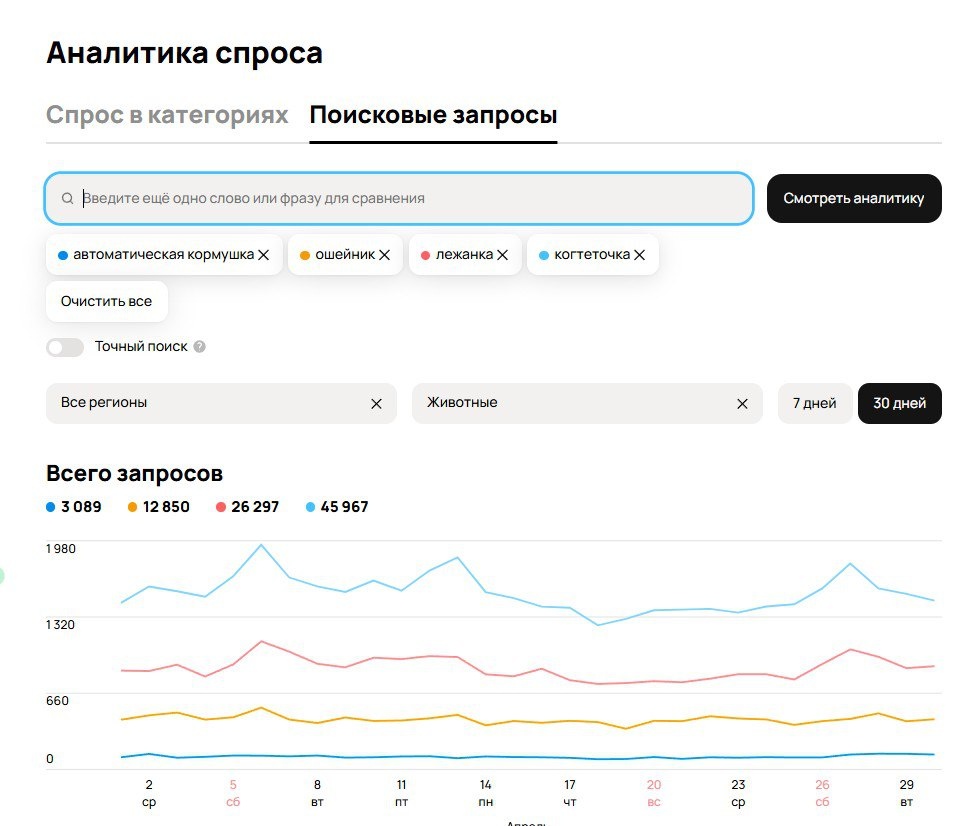 В категории Животные гораздо больший интерес на когтеточкам, чем к ошейникам и лежанкам.