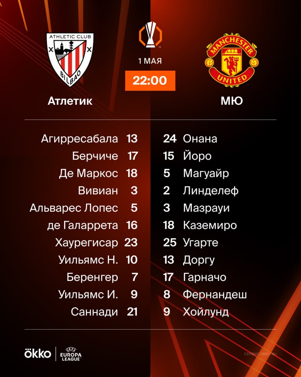 ⚽️⚽ Матч, который мог бы быть финалом Лиги Европы. Изучай составы «Атлетика» и «Манчестер Юнайтед».