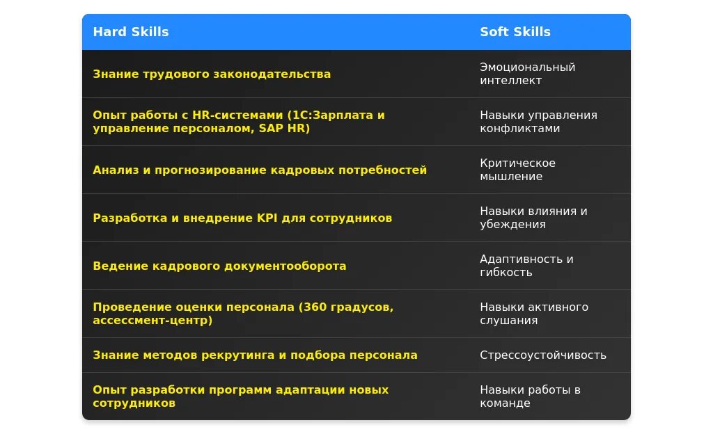 - Навыки: какие актуальные навыки востребованы в HR и как их выгодно представить.