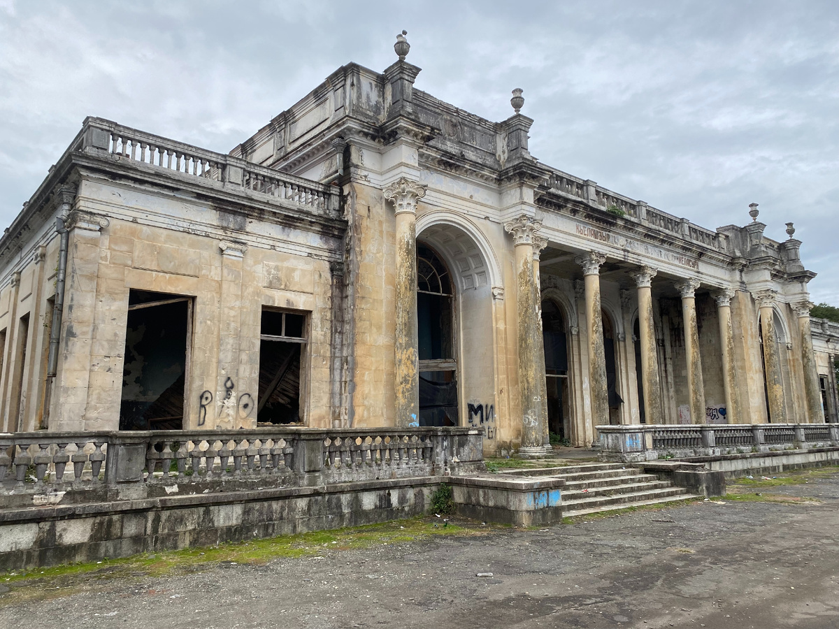 В предпоследний день нашего путешествия по Абхазии мы продолжили знакомство с окрестностями Сухума. От Беслетской ГЭС поехали в сторону Сухумского аэропорта. Навигатор показал, что до него 24 км. По пути увидели заброшенную железнодорожную станцию Я заглянула внутрь - традиционное "Осторожно, заброшено!" Чудо-остановка :) И еще одна интересная. Поселок Гулрыпш показался нам уютным и ухоженным. До аэропорта осталось 5 км. Когда мы подъехали к аэропорту, увидели, что там идет строительство и все огорожено забором. Мы поинтересовались, можно ли сфотографировать, на что получили категорический отказ. Нам даже рассмотреть здание не дали, буквально прогнали куда подальше. Вот так рьяно абхазы охраняют редкие, отремонтированные здания. В этом году Сухумский аэропорт начал работу и уже принимает первые рейсы. Интересно, его по-прежнему нельзя фотографировать? :) Рядом с аэропортом мы увидели указатель на горячие источники и поехали посмотреть. Полезное место оказалось :) Смотрелось эффектн