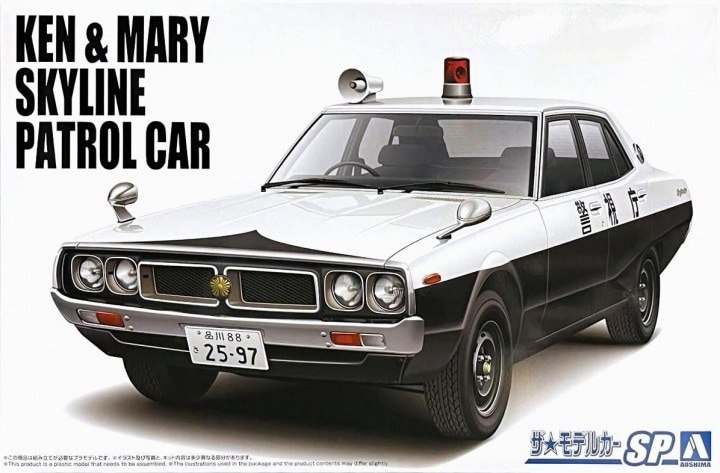 Aoshima из Японии переиздает с новой декалью свою модель полицейского автомобиля разработки 2008 года Nissan Skyline C110 в масштабе 1/24: GC110 Skyline Patrol Car '72 (каталожный номер 201572)