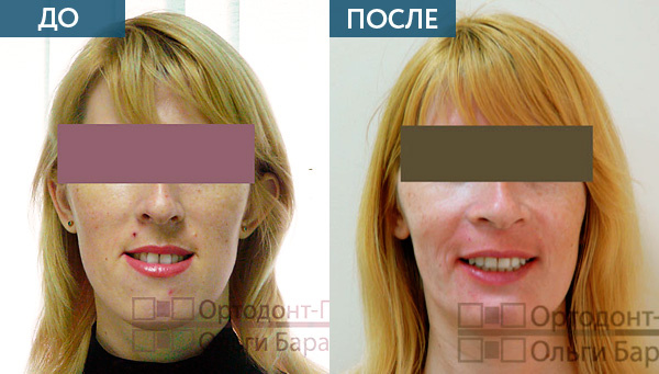 Проблема: в «Ортодонт-проект» стоматологического центра «Диал-Дент» обратилась женщина 32 лет с жалобами на выпирающую нижнюю челюсть. По ее мнению, этот дефект «делал ее некрасивой» и мешал в личной жизни. Еще одним пожеланием пациентки было выравнивание зубов, которые росли неровно с детства, и исправление прикуса. Решение: врач-ортодонт Баранова О.А. диагностирует скелетную форму деформации прикуса, вторичную адентию, скученность зубов во фронтальном отделе верхней и нижней челюстей, сужение верхнего зубного ряда, прямую резцовую окклюзию, перекрестную мезиальную окклюзию. Пациентке показано комплексное ортодонтическое лечение у ортодонта (брекеты Damon и Clarity-SL) и челюстно-лицевого хирурга. В большинстве случаев исправления прикуса у взрослого пациента проводится комплексное лечение, для достижения хорошего и стабильного результата необходимо участие разнопрофильных специалистов-стоматологов. В данном случае требовалась совместная работа ортодонта и челюстно-лицевого хирурга.