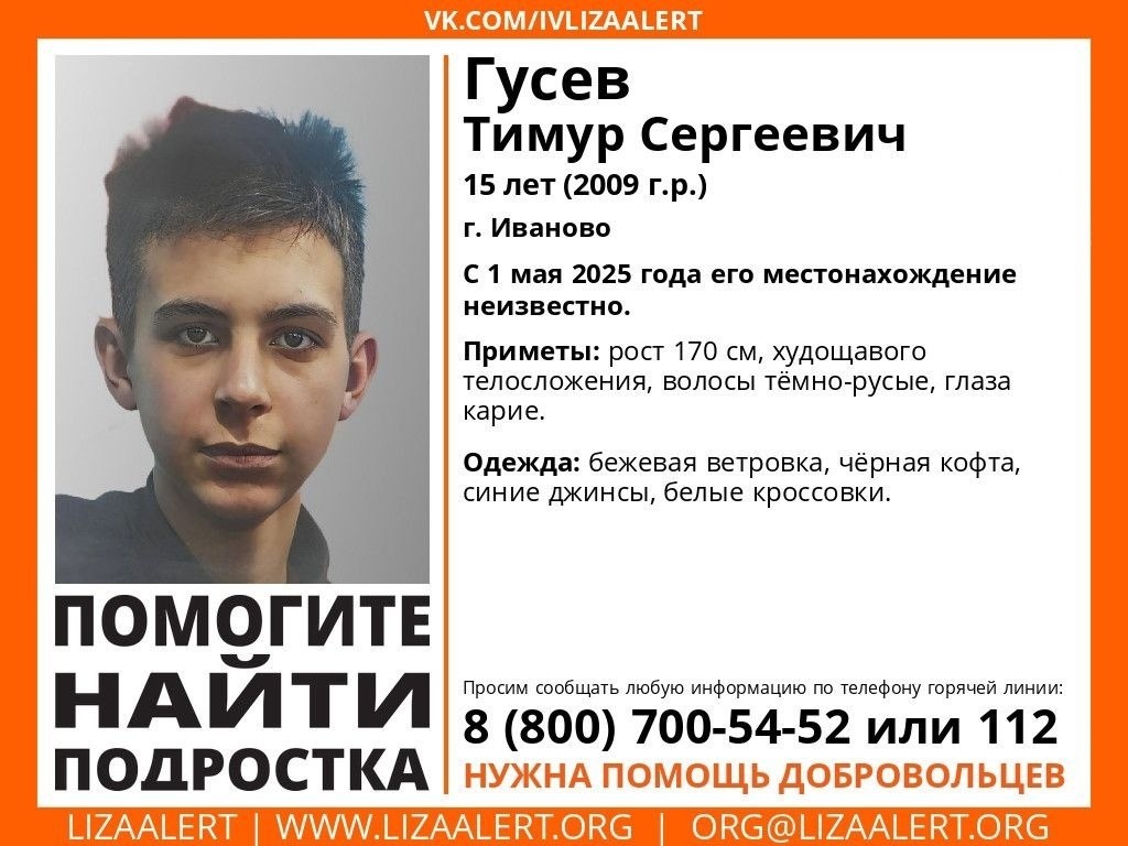 🆘 В Иванове пропал 15-летний Тимур Гусев