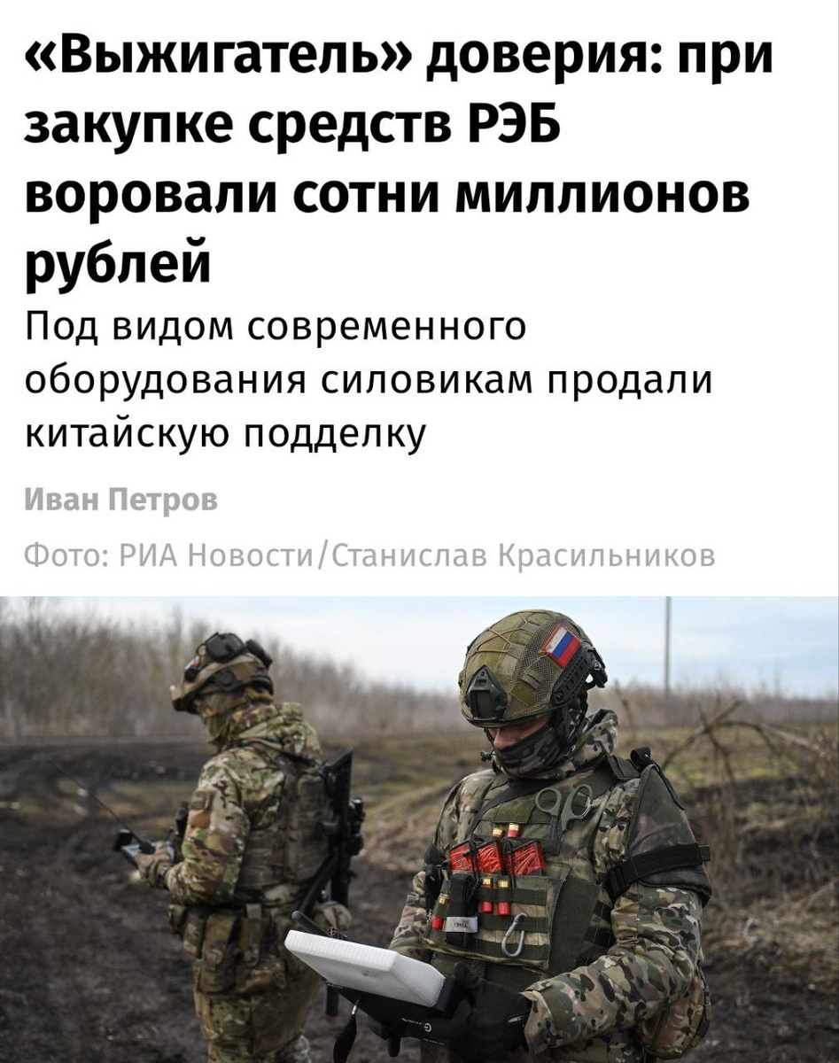 Силовикам поставили неработающие глушилки дронов из Китая Росгвардия закупила китайские системы радиоэлектронной борьбы «Выжигатель» на 820 млн рублей. В ходе боевых действий выяснилось, что глушилки не реагируют на дроны противника. Поставки осуществлялись через подрядчика «Оружейная палата».