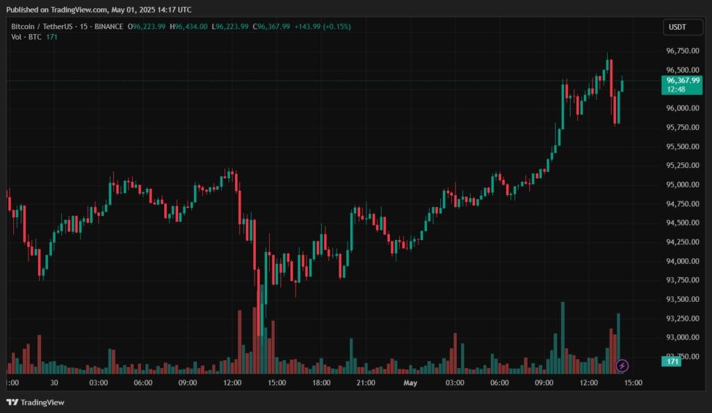 1 мая курс цифрового золота впервые с февраля превысил $96 000, а капитализация крипторынка достигла $3 трлн — уровня марта.