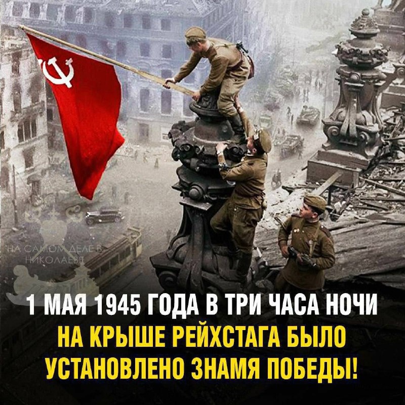 🚩 Ночью 30 апреля 1945 года в 22:40 по берлинскому времени, когда в Москве уже наступило 1 мая, на куполе поверженного рейхстага взвилось красное Знамя Победы