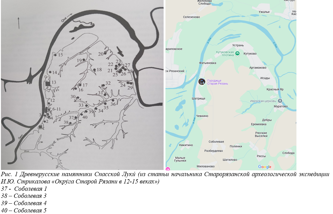 Если из Спасска ехать через Фатьяновскую переправу в сторону трассы М5 «Урал», то с левой стороны перед деревней Разбердеево мы увидим Соболевую, одну из самых старых деревень этой округи. Её история уходит в древние времена расцвета Рязанского княжества, когда с ростом Старой Рязани вокруг нее возникло много новых поселений. Среди археологов активно используется название Спасская Лука́. Мы уже знаем, что слово "лука́" означает изгиб реки. Ока после впадения в нее Прони резко меняет свое направление с восточного на северное. Далее она огибает микрорегион с севера и поворачивает на юг, образуя излучину, этот микрорегион принято называть Спасская Лука́. На его территории помимо Старорязанского и Новоольговского городища обнаружено 38 неукрепленных поселений времен существования Рязанского княжества 12 – 15 веков. Одним из таких поселений является деревня Соболева́я.
