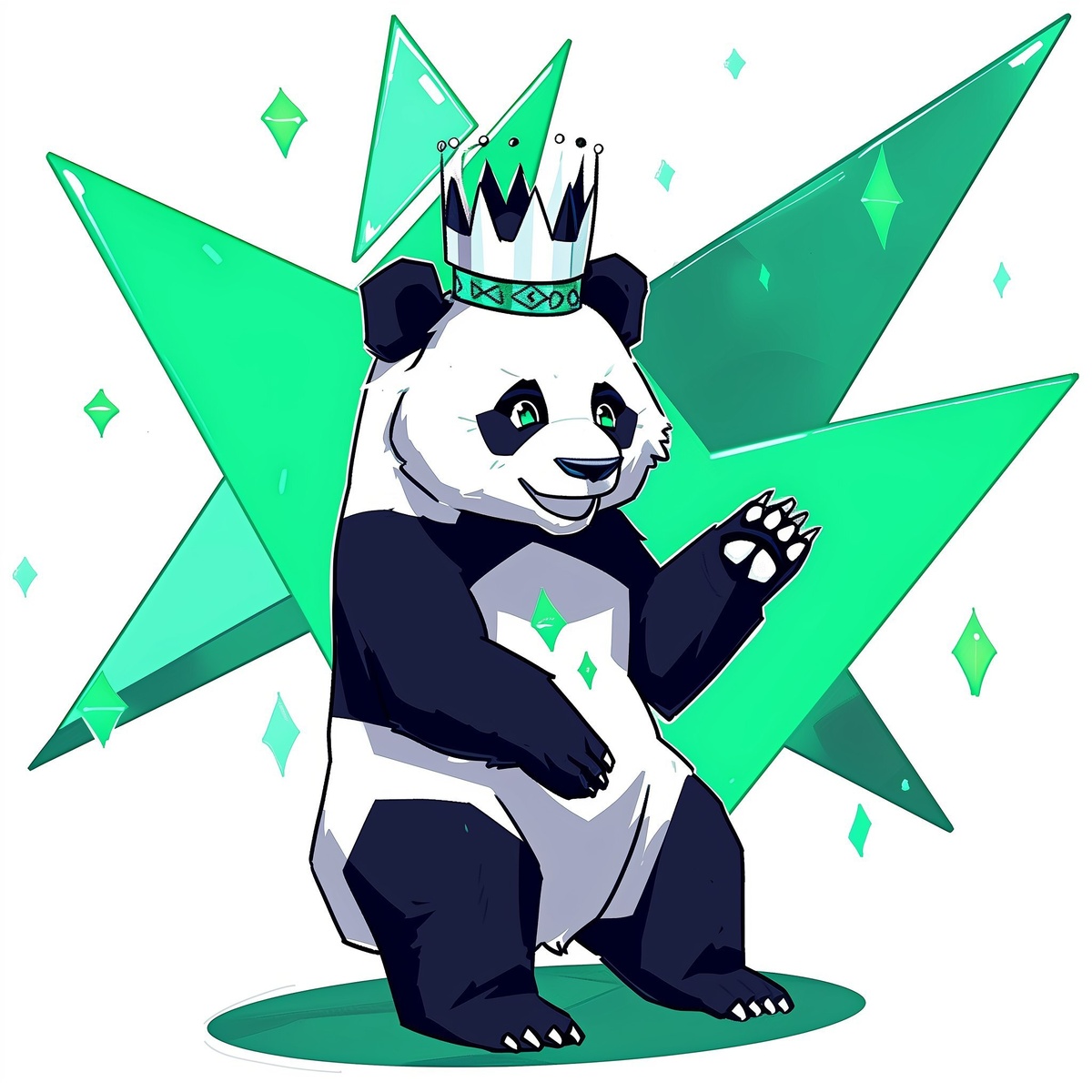 Создано на основе запроса: A cute, friendly and happy panda with a crown