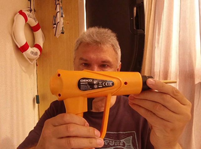 Паяльник для пластика или термостеплер Дорогие друзья, всем привет! Не так давно чтобы отремонтировать треснувший пластик приходилось как только не изгаляться. В том числе нагревать скрепки от обычного степлера паяльником, держа их в плоскогубцах и проплавляя пластик. Предварительно часто нужно было насверливать тонкие отверстия и пр…, пр… Когда подарили термостеплер решил сразу его попробовать и отремонтировать ящик, в котором храню разную рыболовную мелочевку. Во время ремонта он сильно пострадал. Что из себя представляет данный паяльник. Формат пистолета, две направляющие с разогревом. В эти направляющие вставляются скобы, которыми и будем армировать шов пластика. В данном комплекте 4 вида скрепок. Самые интересные и универсальные на мой взгляд - это змеевики. Ими и буду чинить ящик . В комплекте так же ножик для срезания наплывов после вплавления скоб и кусачки чтобы отрезать направляющие скоб. Кусачки лучше сразу заменить на более качественные. Начинаю ремонт с того что фиксирую