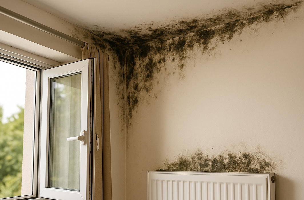 Оконные откосы и пространство вокруг окон страдают от постоянных перепадов температур. Особенно уязвимы пластиковые окна, которые часто "плачут" — на них образуется конденсат, стекающий вниз и создающий влажную среду для плесени.