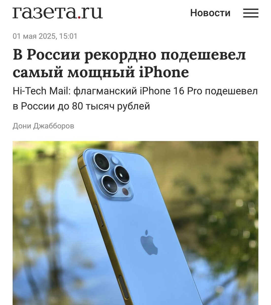 Случилось невероятное! То ли звезды сошлись, то ли рубль вспомнил о своих былых заслугах, но iPhone 16 Pro в России вдруг резко подешевел. Еще в январе за него просили 105 тысяч, а теперь, благодаря невиданному укреплению нашей валюты, он стоит... всего 80 тысяч. Всего 80 тысяч! Почувствуйте разницу. Эппл, кажется, наконец-то оценила покупательную способность россиян и решила сделать широкий жест. Или это просто случайное совпадение? В любом случае, пока рубль не передумал, есть шанс урвать заветный гаджет по "выгодной" цене. Главное, успеть, пока курс не поменялся в обратную сторону, и iPhone снова не стал золотым. Ирония судьбы, не иначе.