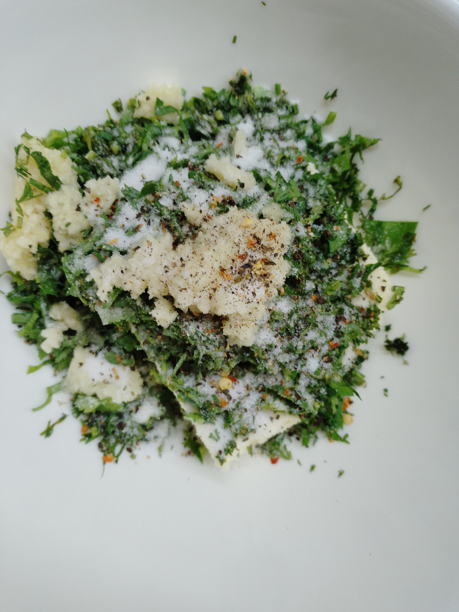 У меня курица весом 1,5 кг, после обрезки всех ненужных частей. Для зеленого масла понадобится: Размягченное сливочное масло 100-120 гр. Зелень свежая ( урок, петрушка) 25-30 гр. Чеснок 4-5 крупных зубчиков. Соль примерно 2 ч. л. Черный молотый перец Хорошенько перемешиваем. Курицу разрезаем по грудке и раскрываем. Ломаем суставы, что бы она ровно лежала. Далее с помощью ложки или столового ножа с не острым концом отделяем кожу от мяса, стараясь не порвать. Не надо отдирать кожу полностью. Затем, закладываем зеленое масло под кожуу курицы и массажными движениями распределяем по всему объему мяса. Оставшимся маслом смазываем курицу сверху. Ставим в заранее разогретую духовку до 180 гр. До золотистого цвета. У меня это заняло примерно минут 50. ( по времени смотрите по своей духовке). Постоянно (я поливала раз 5) поливаем вытопившимся маслом и куриным соком курицу сверху. По окончании срока готовки, я оставила курицу в выключенной духовке еще минут на 10-15 что бы масло пер