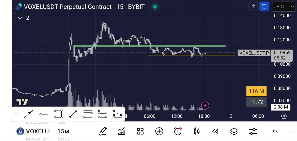 #VOXELUSDT Ожидаю на монете пробой боковика в одну из сторон.