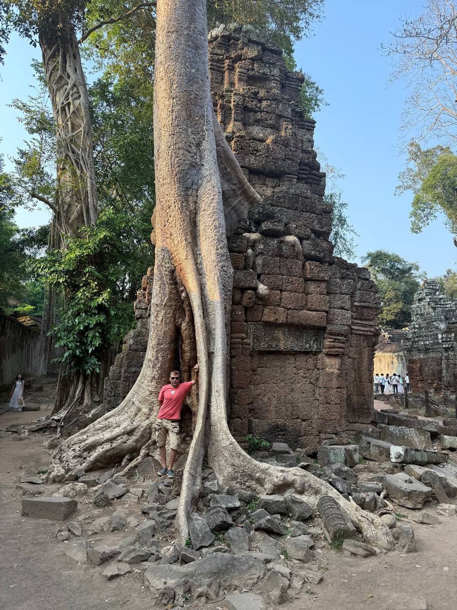 Та Пром: храм, который поглотили джунгли 🌿🏛️ Ты заходишь внутрь — и мир меняется. Время здесь не просто остановилось, оно исчезло. Корни гигантских деревьев проросли сквозь древние стены, обвивая их, как змеи. Камни разорваны в клочья, но храм не разрушен — он слился с природой, став её частью. Здесь нет суеты Ангкора. Только тишина, пронзённая шёпотом листвы и скрипом вековых корней. 😳 Ты идёшь вперёд, а в голове только одна мысль: "Это не просто храм. Это живой организм." Когда-то здесь снимали «Расхитительницу гробниц», но реальность куда мощнее кино. Камни, покрытые мхом, словно хранят древние тайны, а деревья, проросшие сквозь крышу, как будто держат небо. 🔥 Та Пром — это место, где цивилизация проиграла природе. Где прошлое растворяется в джунглях. Где ты чувствуешь не просто историю, а её дыхание.
