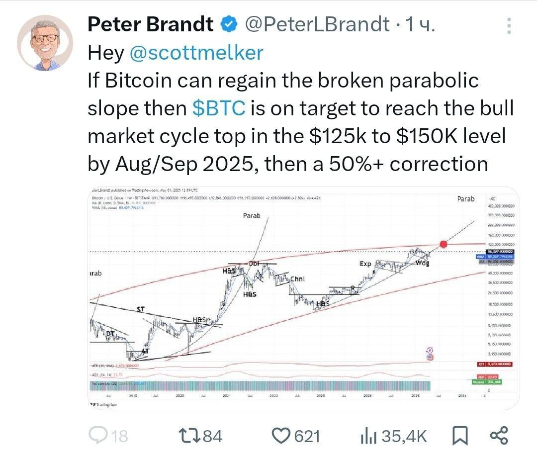 Известный трейдер Питер Брандт ожидает $120 000 - $150 000 по биткоину к августу, но затем - коррекцию на адские 50%.
